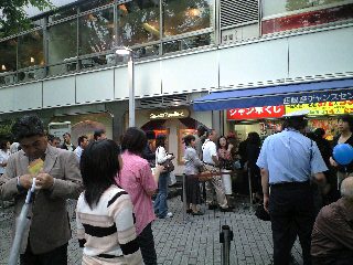 | 流石に最終日の行列は昼頃には1時間半になりました。 | 行列に並んだ人には、ロッティーちゃんのマグネットが配られました。 | 夢の実現に向けて50枚以上買っている方がかなりいますねェー。 | 小雨が降ったり止んだりの最終日の行列には、若い女性が目立ちました。 |