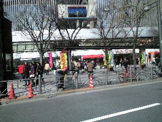 | 土曜日の大安吉日は流石に晴海通りまで行列ができます。 | いつものノボリに加えプラカードも登場し、売り買い両方が熱気に溢れています。 | 薄曇りでも風がなくて助かりますが、やはり2月の西銀座は冷えます。 | 売場が近づくといつもながらの緊張感と『今度こそは‥!』の熱い思いが募ります。 |