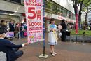 | ドリームジャンボ初日の西銀座は4月初旬にしては暑い朝を迎え、夢(ドリーム)を求めての行列です。 |